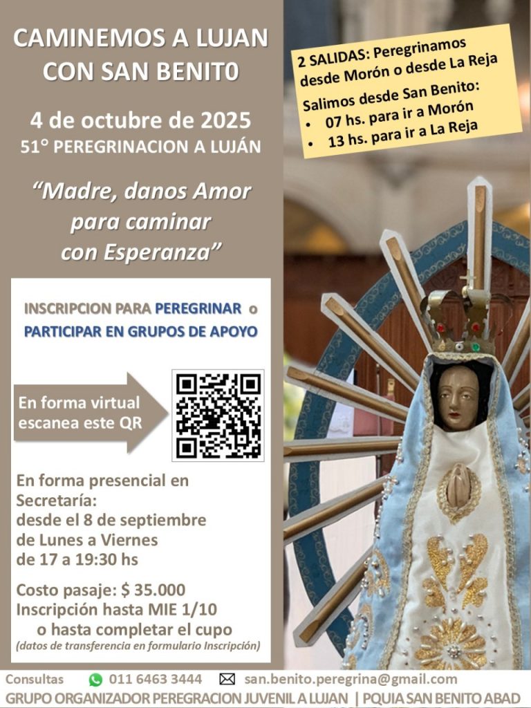 Inscribite y ponete en contacto con nosotros al mail san.benito.peregrina@gmail.com